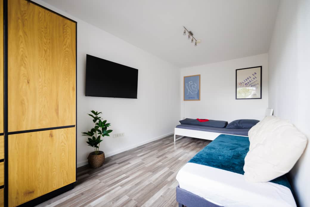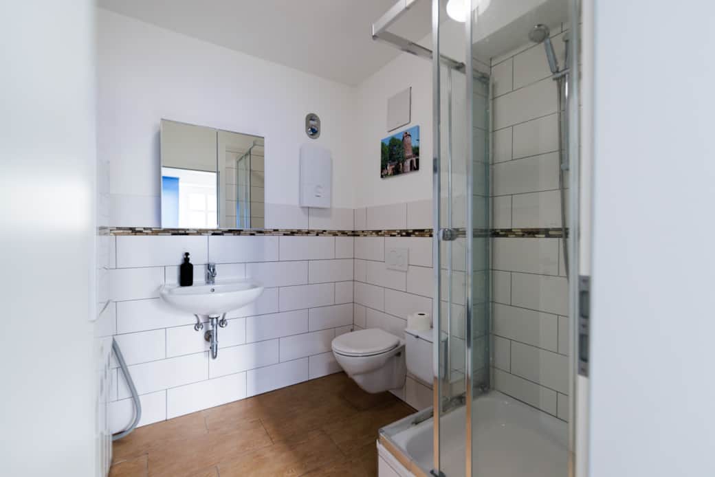 Die Wohnung ist am Fuße vom Petersberg. Sie hat einen separaten Eingang mit 2 Stellplätzen vor der Tür. Mit dem Auto sind es 7 Minuten in die Innenstadt.